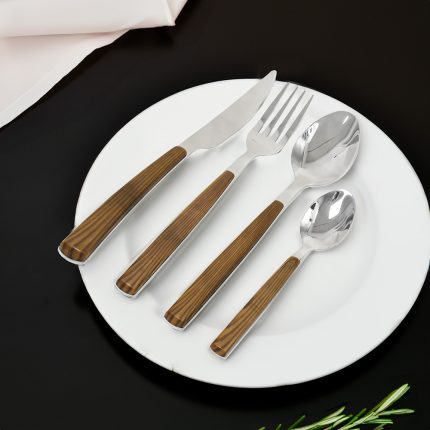 CUBIERTOS 16PZ EN CAJA MANGO MARRON LH-3750