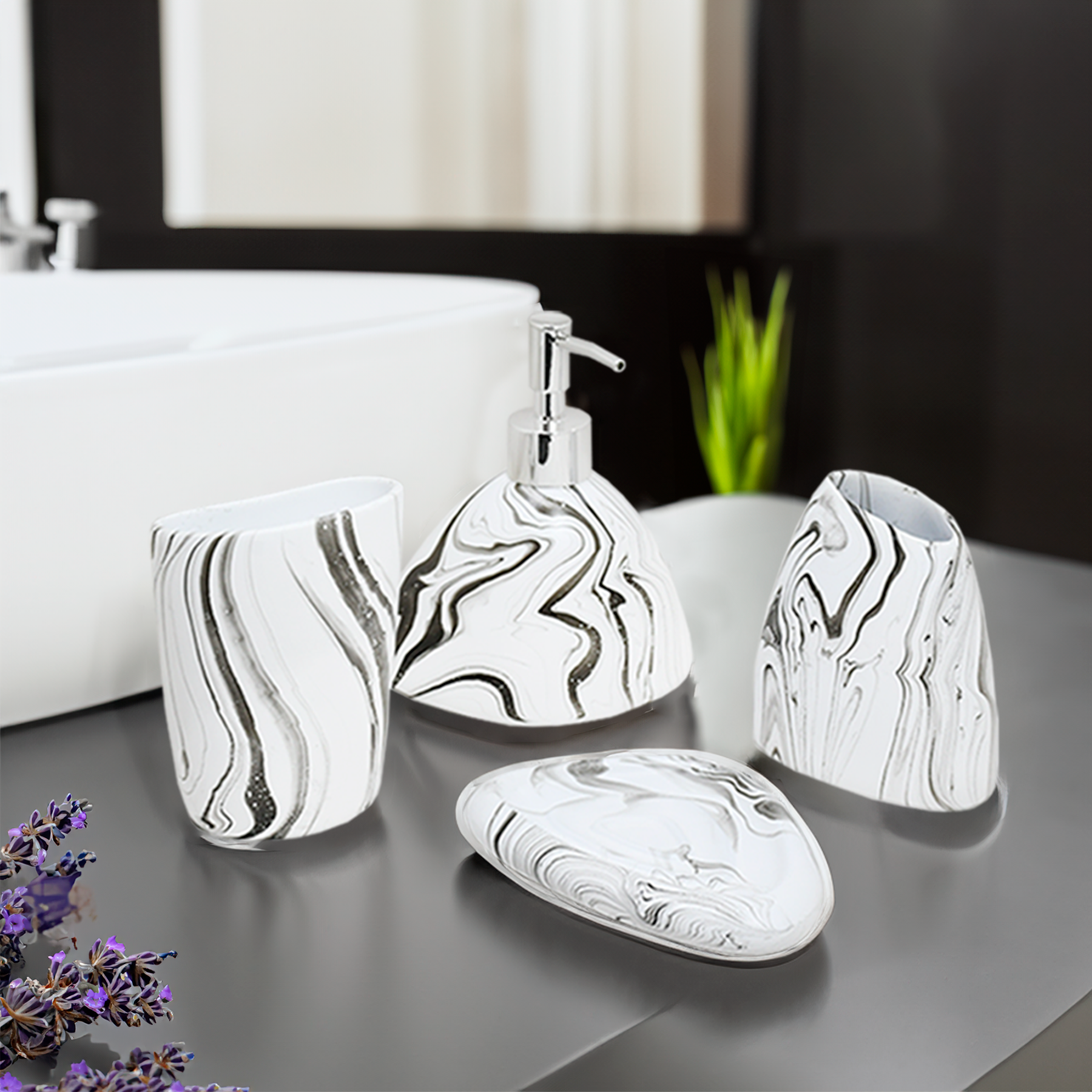 ACCESORIO CERAMICO P/BANO 4PZ MARMOLADO LH-3645