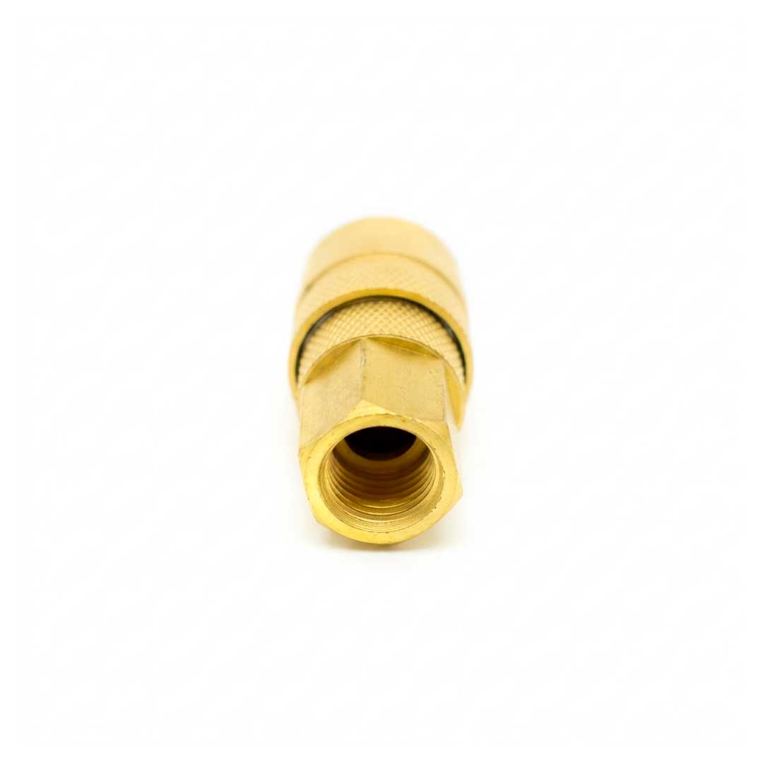 Los acoples rápidos tienen una función de conexión y desconexión rápida. Estos dispositivos poseen pequeños balines en el cuerpo del acople que engranan en una cavidad de la espiga para retenerlo firmemente y abrir la válvula interna, permitiendo el paso del ...aire. El acoplamiento, al ser giratorio, evita que la manguera quede torcida o enrollada. Al retraerse la manga deslizante provista en el acople, los balines se abren y permiten desconectar la espiga insertada y una válvula automática accionada por resortes sella instantáneamente, eliminando posibles fugas.