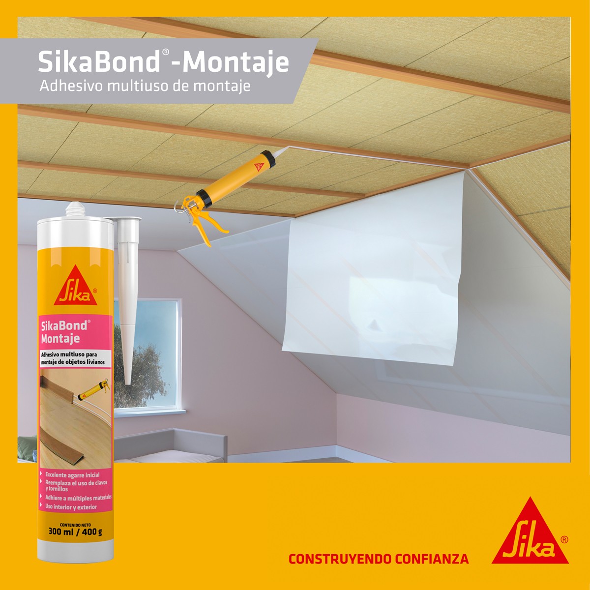 ADHESIVO MONTAJE SIKABOND GRIS 300CC
