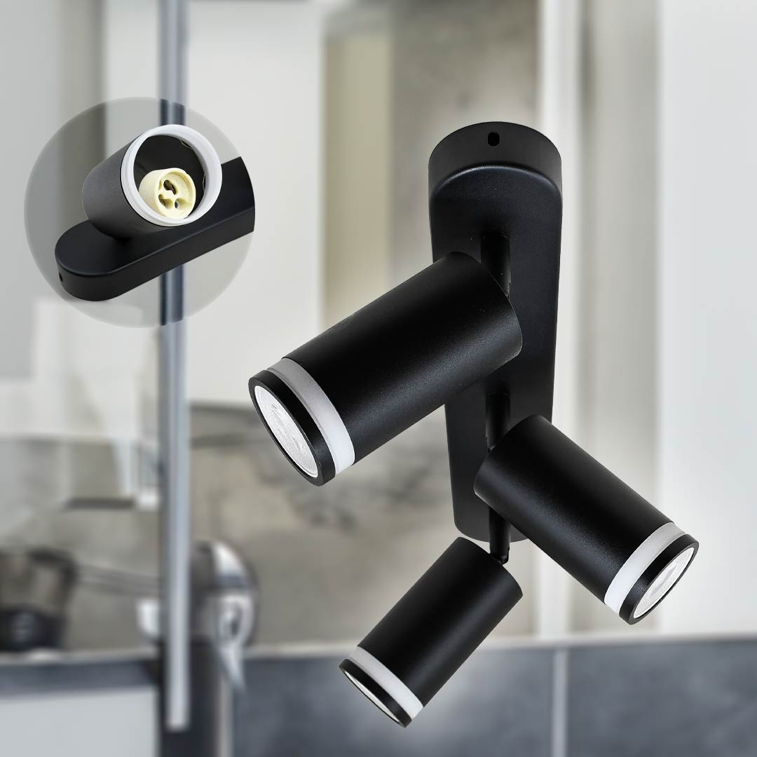 APLIQUE 3 LUCES NEGRO PARED-TECHO