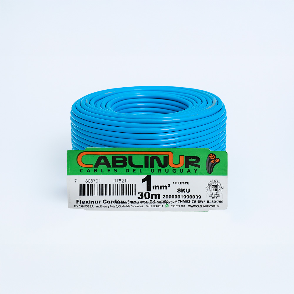 CABLE 1X1MM 30 METROS CABLINUR CELESTE FLCO1C30