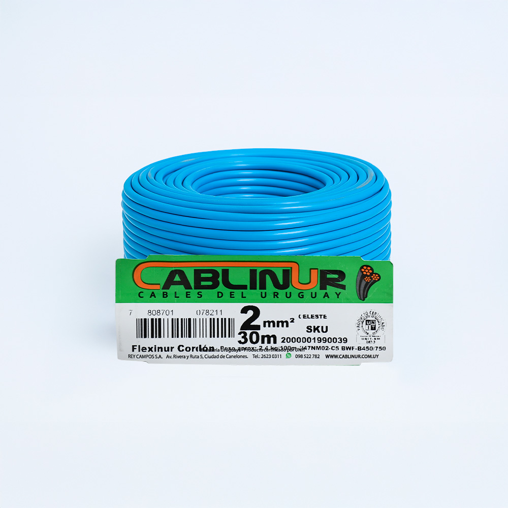 CABLE 1X2MM 30 METROS CELESTE CABLINUR FLC02C30