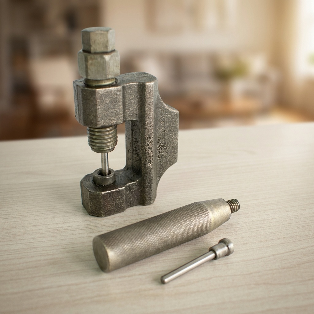 Espesor: 2.3cm Incluye, un mango de 7cm de largo y 1.7cm de diámetro para mejor manejo y una pieza metálica que sirve para retirar el perno de la cadena