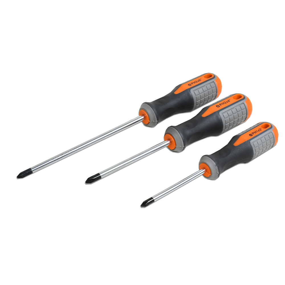 Descripción: Destornillador Modelo: KM-0022 Material: Cromo vanadio Color: Gris y naranja Peso: 620g Cantidad de piezas: 6 Piezas *Paleta ancho 5mm, largo 17.5cm, largo mango 10cm *Paleta ancho 6mm, largo 21.5cm, largo mango 11cm *Paleta ancho 6mm, largo 26.5cm, largo mango 11cm *Phillips PH1, largo 17.5cm, largo mango 10cm *Phillips PH2, largo 21.5cm, largo mango 11cm *Phillips PH2, largo 26.5cm, largo mango 11cm Presentación: En blíster