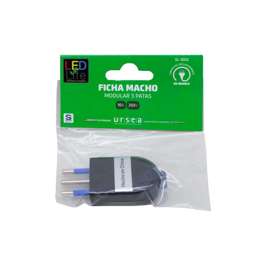 FICHA MODULAR 10AMP 3 PATAS NEGRA LED LIFE SL1002