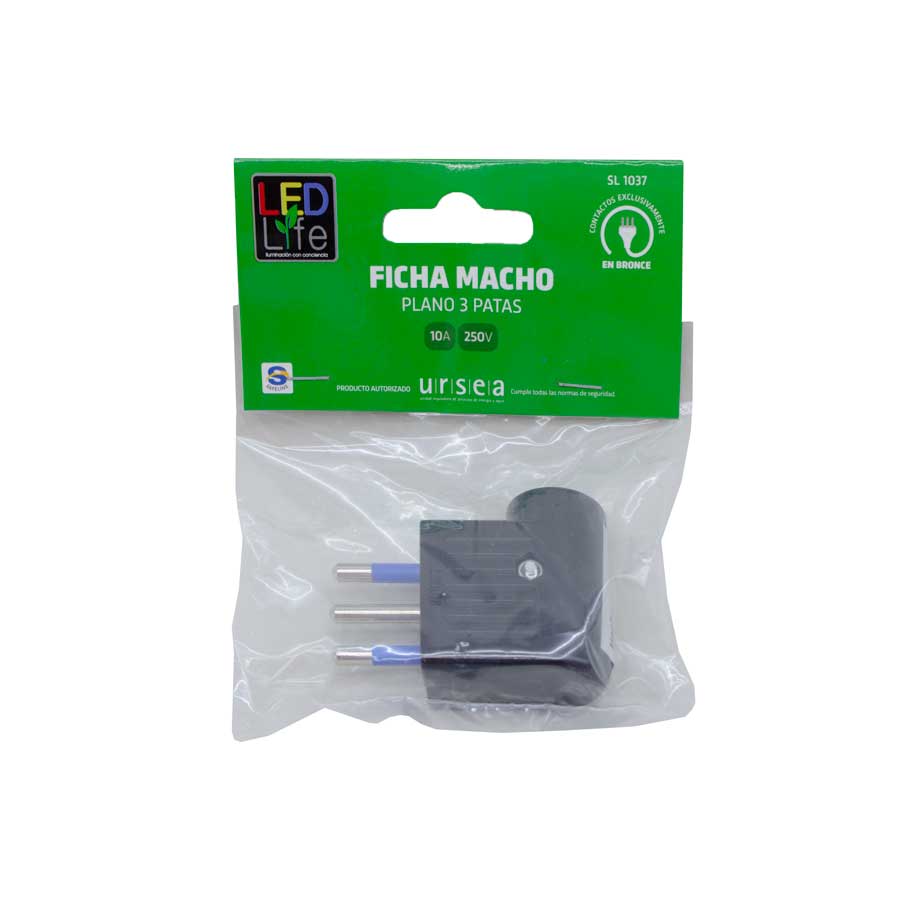 FICHA PLANO 10 AMP 3PATAS NEGRA LED LIFE SL1037