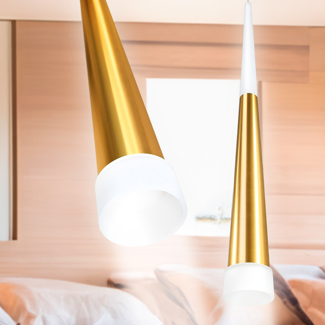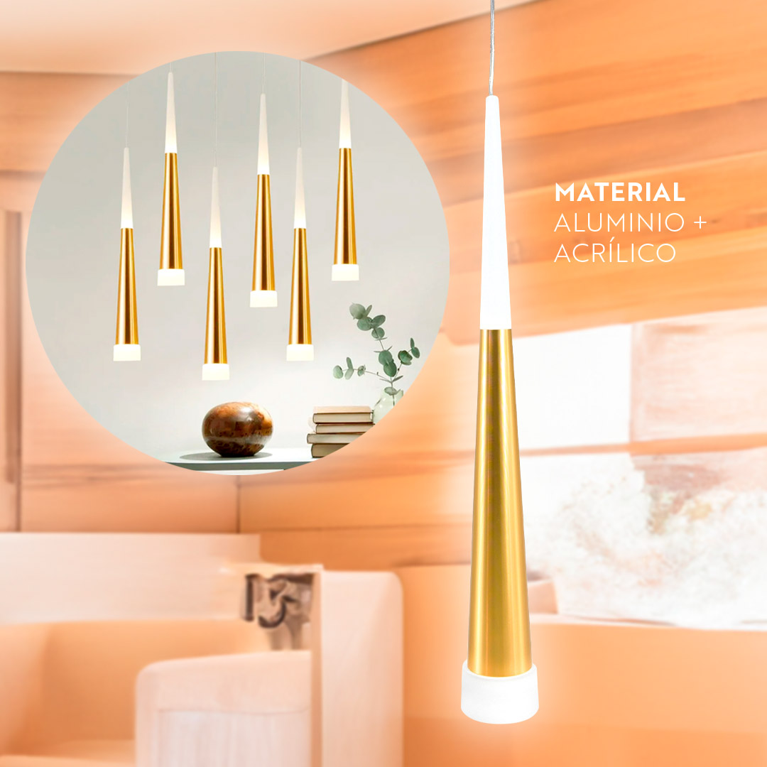 LAMPARA COLGANTE 45CM TIPO CONO DORADO LH-3858