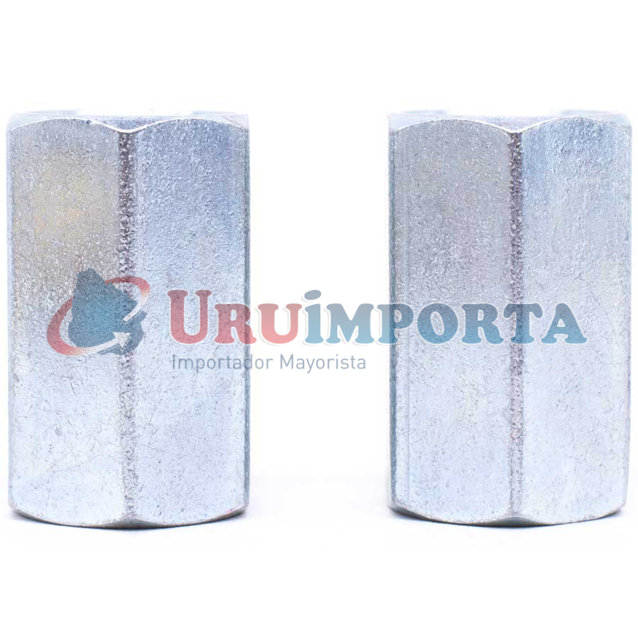 -1 adaptador 11cm plateada con rosca macho en un extremo y rosca hembra en el otro.