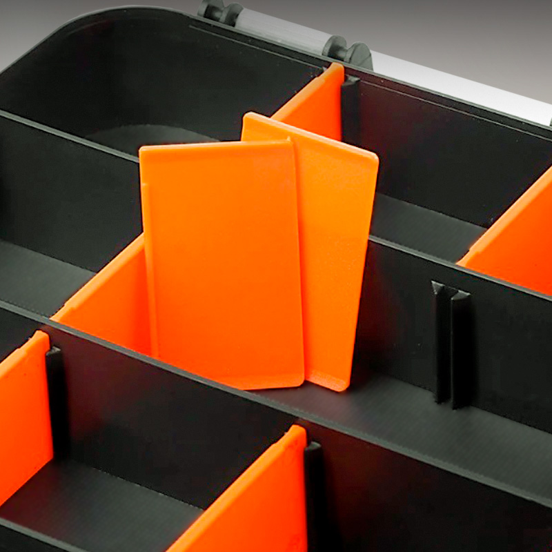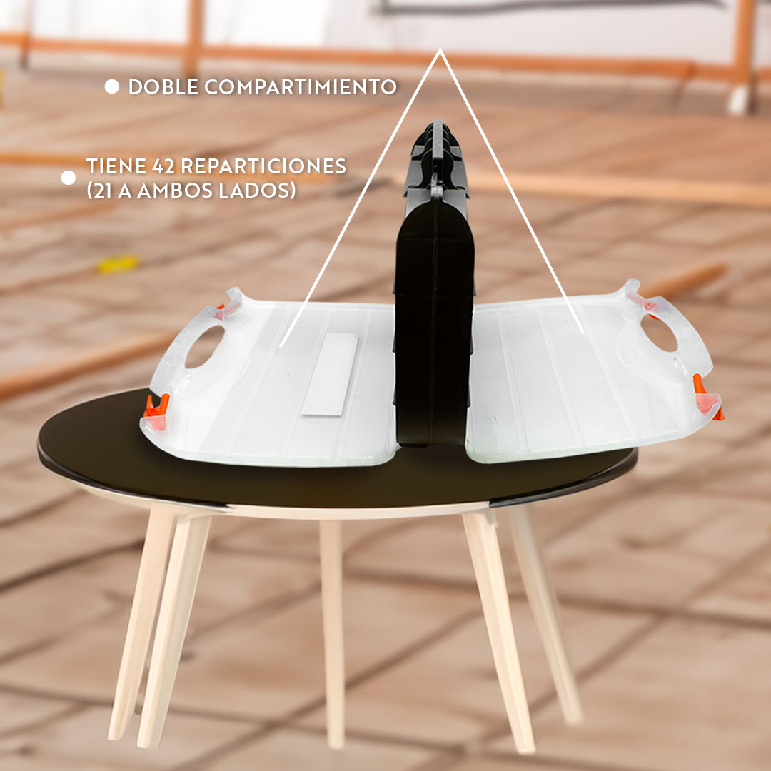*En caso de necesitar un compartimento mas grande, las paredes naranjas se pueden retirar y así lograr mas espacio.