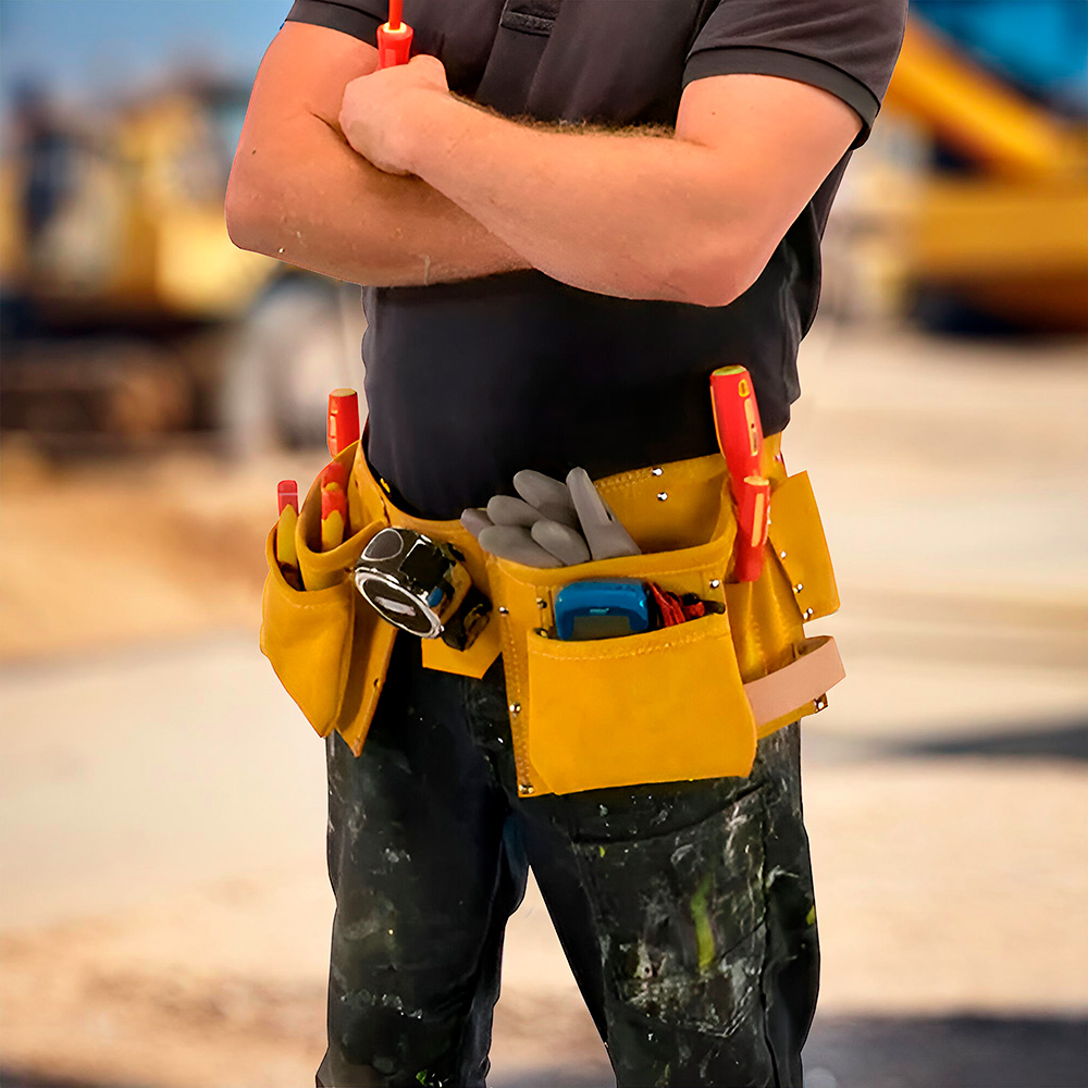 Porta herramientas de cuero para colocar en la cintura, cuenta con correa ajustable de nylon con broche de plástico. Ideal para tener consigo todas aquellas herramientas que más usas a la hora de realizar cualquier tarea como por ej. pinzas, tenazas, llaves, martillo etc.