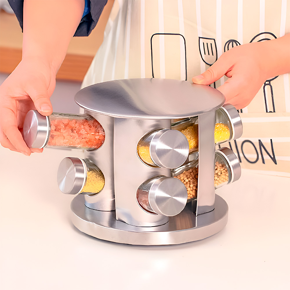 SET DE CONDIMENTOS 8 PZ GIRATORIO PLATEADO LH4619